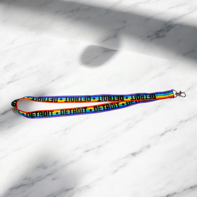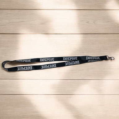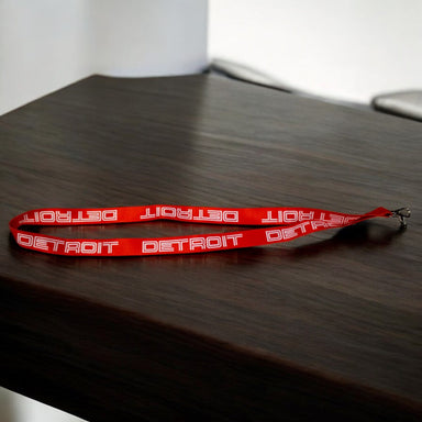 3/4" x 18" Made of polyester Printed on both sides Swivel lobster clasp A Detroit Shirt Company exclusive item