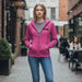 A great mid-weight zip hoodie in bright, fun colors. Please note, these do not have a lot of strech and run a little small. If in between sizes order up.