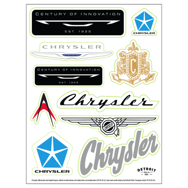 Sticker - Chrysler 100 Years - Sheet $12.506" x 8" Sticker sheet contains 10 peel-off stickers Suitable for indoor or outdoor use Printed on high quality vinyl Adheres strongly to smooth c...
