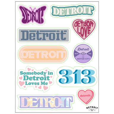 Sticker - Detroit Logos - Sheet $9.506" x 8" Sticker sheet contains 11 peel-off stickers Printed on high quality vinyl Adheres strongly to smooth clean surfaces Suitable for indoor o...